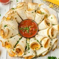 This blooming quesadilla ring recipe is a unique appetizer dish that everyone goes crazy over. This show-stopping appetizer is great for Thanksgiving, Christmas, New Year’s Eve and always a total hit at our Super Bowl party!