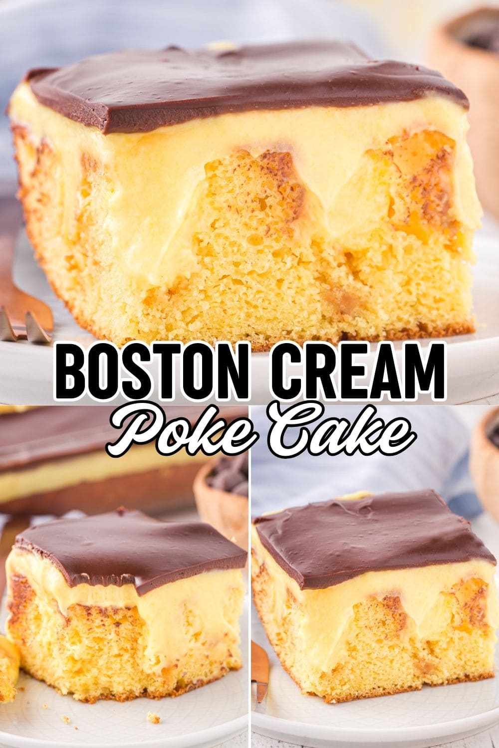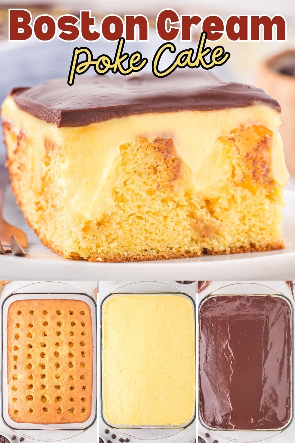Our Boston Cream Poke Cake is just like the famous custard-filled classic New England pie, but in a poke cake form!
