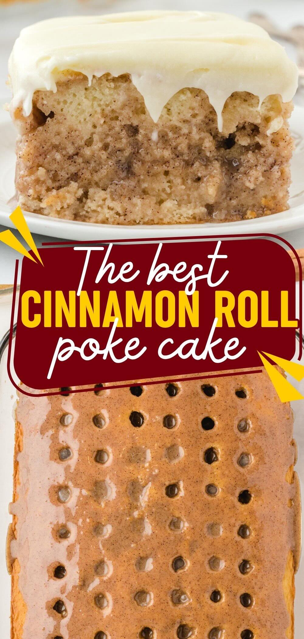 This cinnamon roll poke cake recipe is one of my favorite desserts. The sweet and moist cinnamon sugar cake and the creamy cream cheese frosting combination is simply perfection.