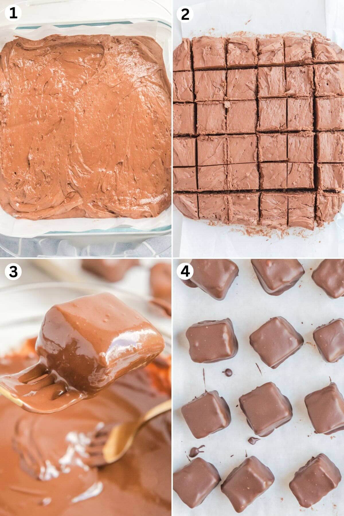 - Dip and chill: Using forks or dipping tools, coat each candy square in melted chocolate and return to the baking sheet. Chill in the refrigerator for 30 minutes, or until the chocolate shell is set.