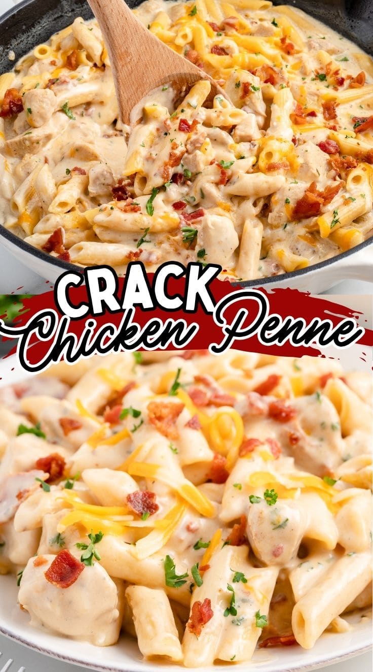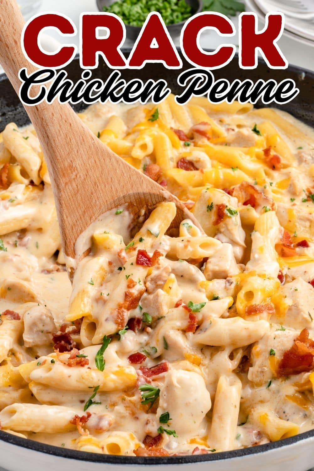 Crack Chicken Penne is a one-pot pasta recipe made with a cheesy, creamy combination of cubed chicken, bacon, cheese, and ranch seasoning. It’s addictively delicious!