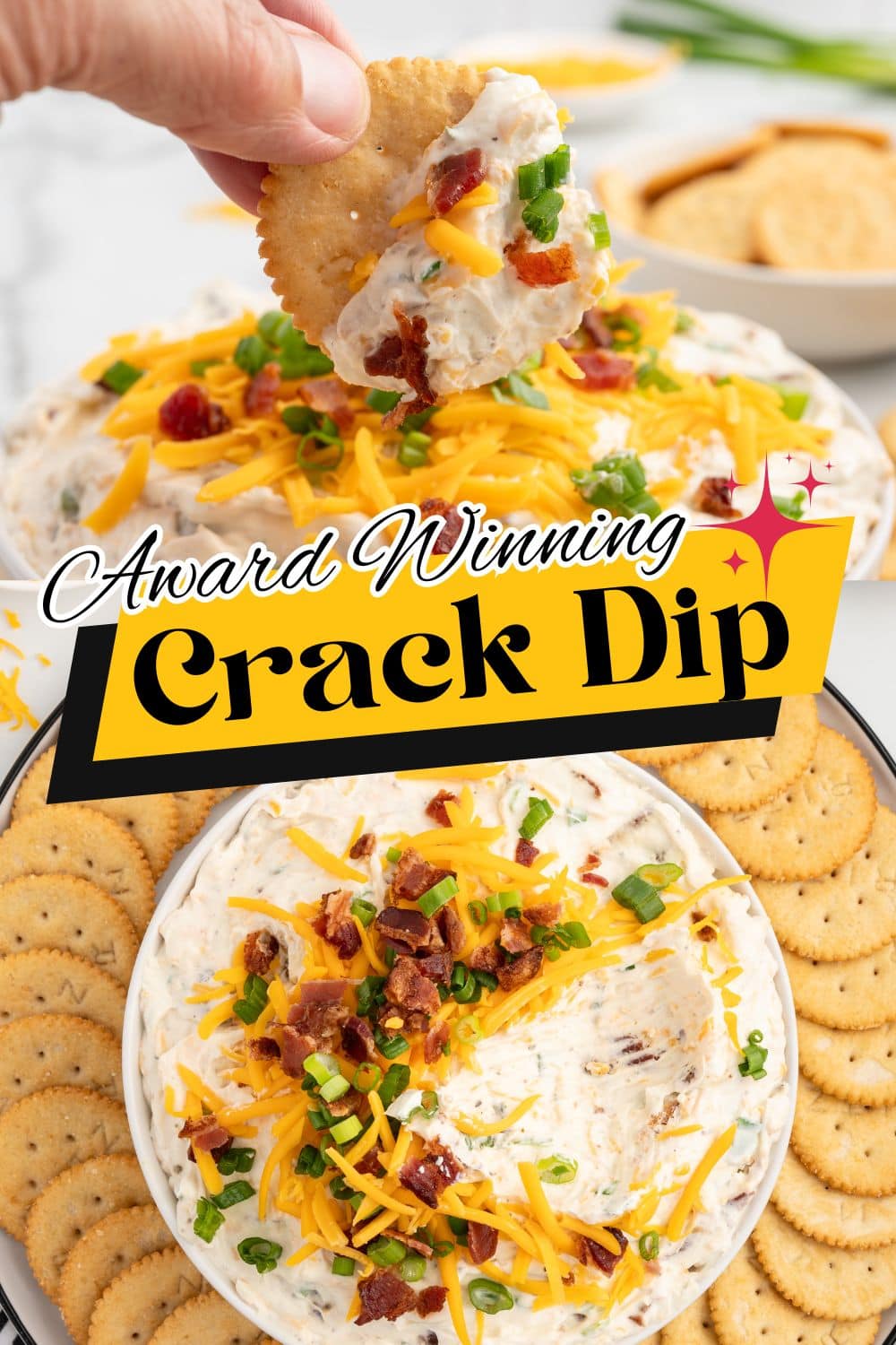 Our easy Crack Dip recipe takes a basic Chip Dip or Veggie Dip and turns it into the best party dip with bacon, cheese, and ranch seasoning. Made like my Million Dollar dip, its creamy texture and cheesy richness make it impossible to resist.