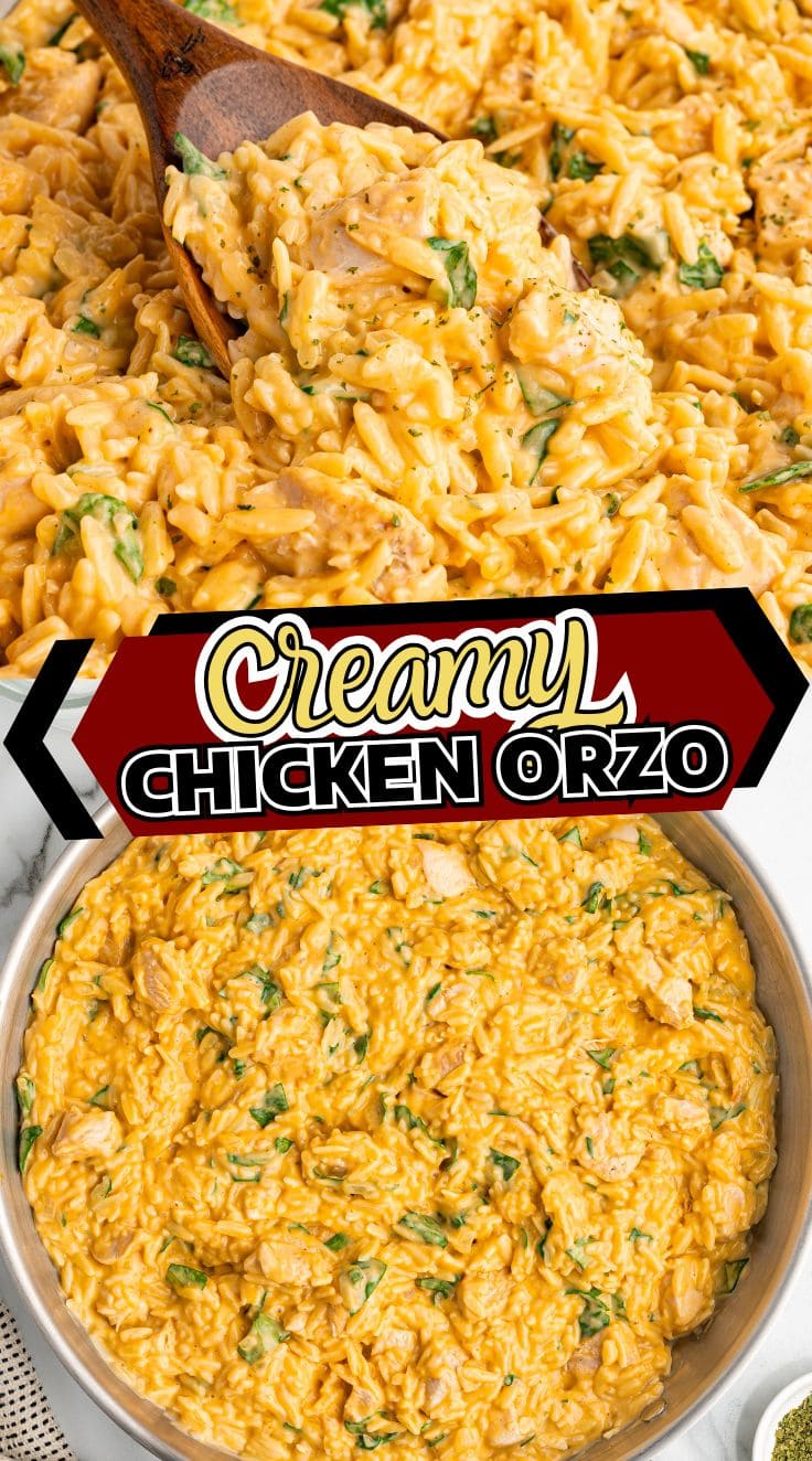 Creamy Chicken Orzo is a one-skillet dinner made with tender chicken, spinach, and orzo pasta in a rich, cheesy sauce. Ready in just 30 minutes!