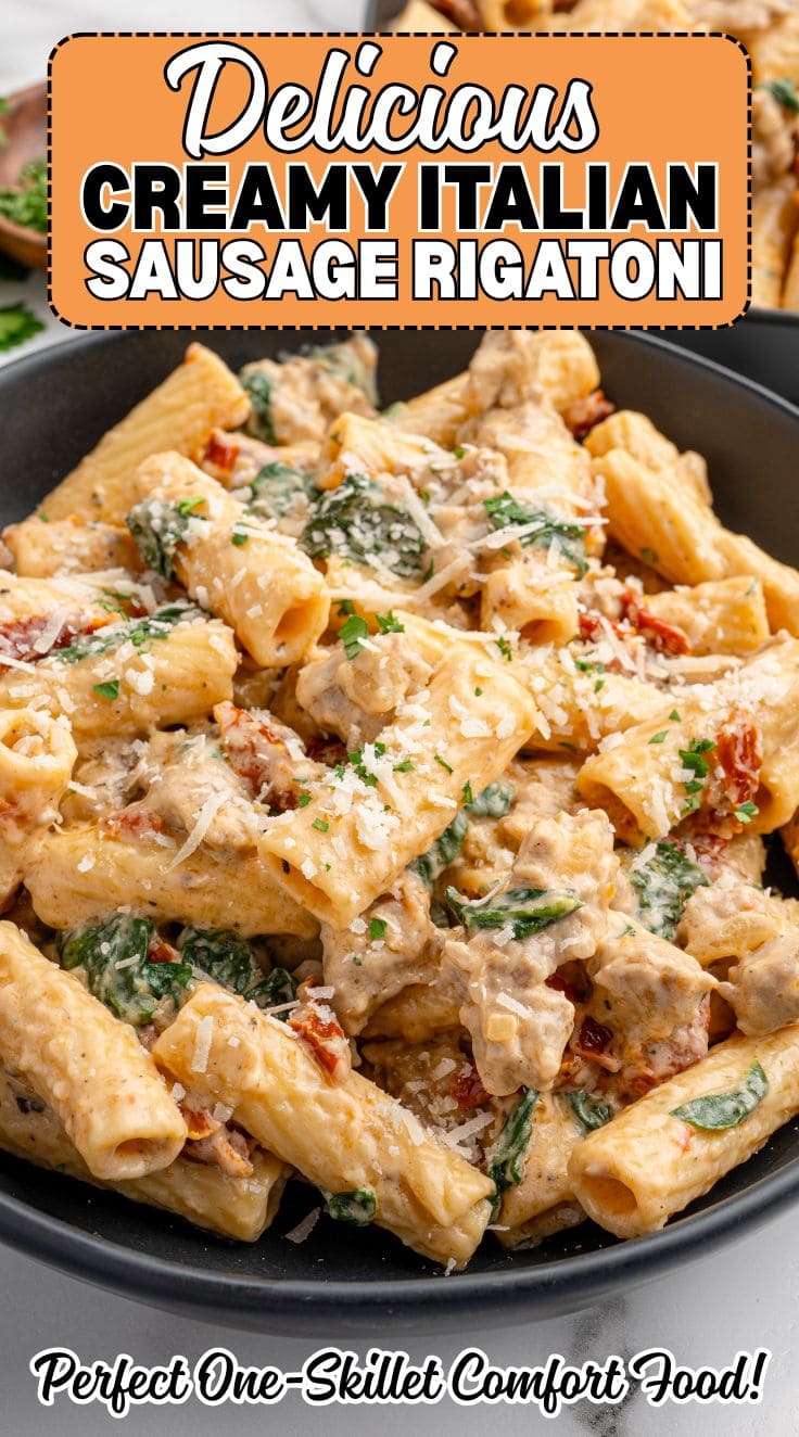 Creamy Italian sausage pasta is one of those comforting meals that brings me back to the kind of simple cooking I love most. Tender rigatoni, savory Italian sausage, sun dried tomatoes, and spinach simmer in a parmesan cream sauce that feels rich and cozy yet still incredibly easy. It’s the kind of one skillet dish that makes an ordinary night feel a little more special.