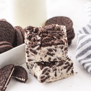 Big chunks of Oreos are mixed into the white chocolate fudge base, and then more are placed on top so that each bite has the classic cookies and cream flavor, creamy fudge texture, and crunch of a chocolate-covered Oreo cookie.