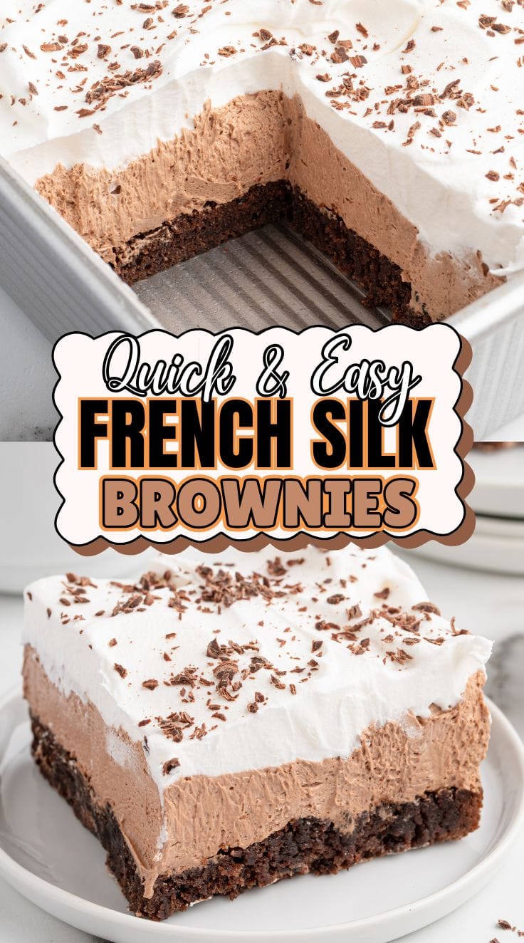 I love making these easy French silk brownies because they combine my two favorite treats into one irresistible dessert. When I’m craving something decadent, I start with a boxed brownie mix shortcut to keep it simple, then spread a silky chocolate cream layer on top so that feels even more special.
