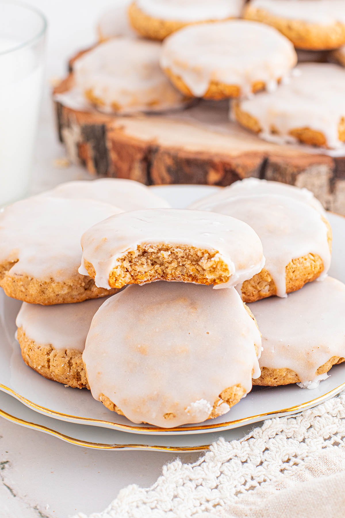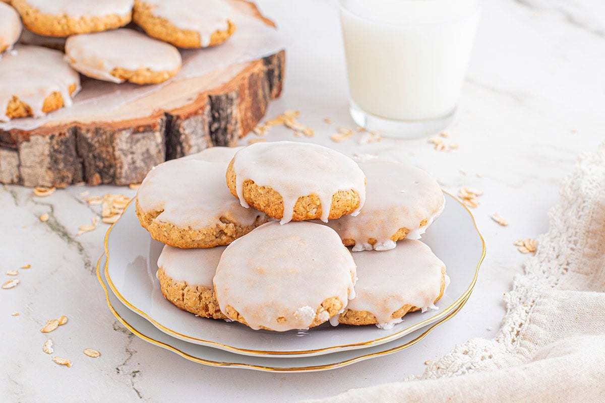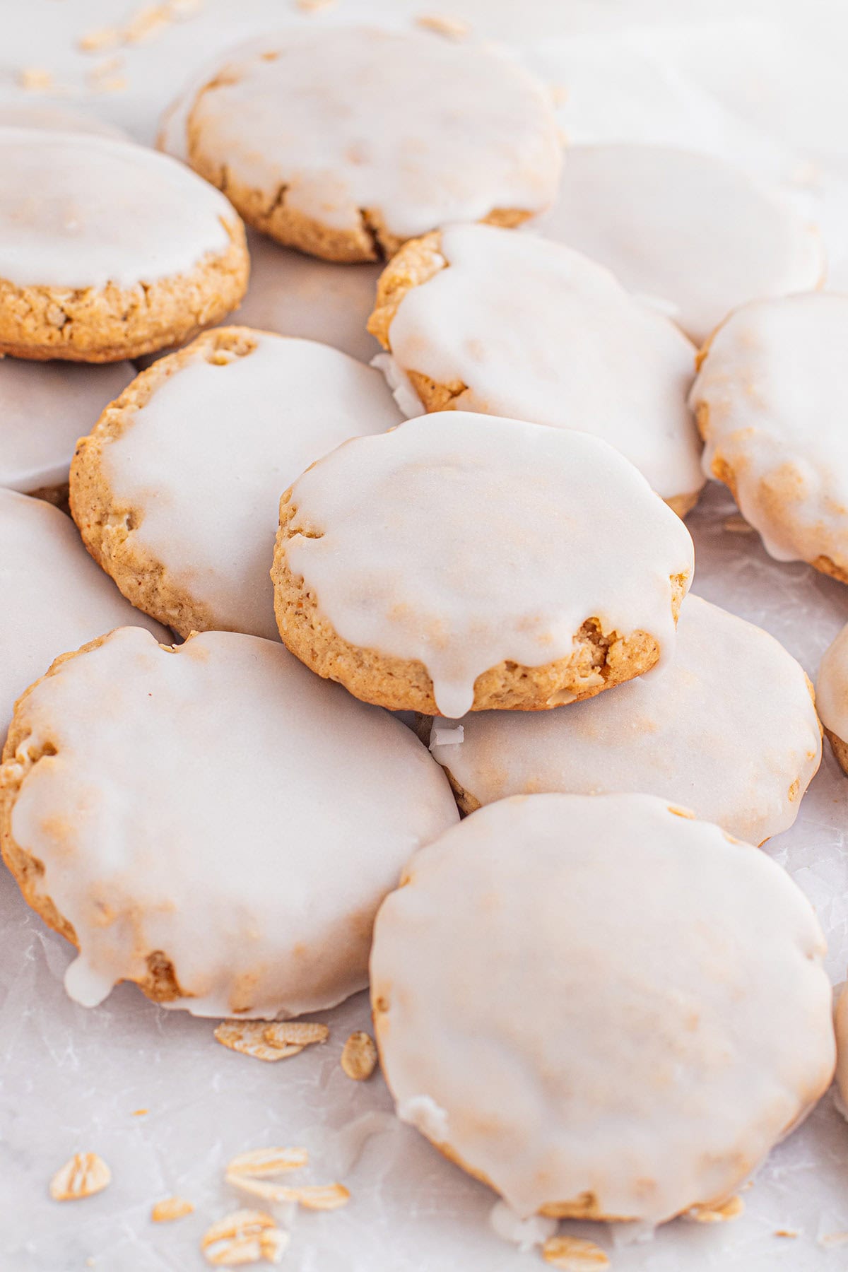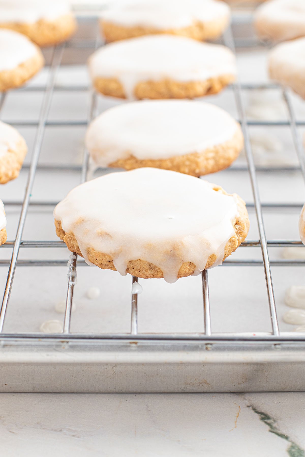 - At Room Temperature: Store the iced oatmeal cookies in an airtight container at room temperature for up to 5 days. The glaze may soften slightly if the cookies are stacked, so if you’re layering them, place a sheet of parchment paper between each layer to help preserve the icing.