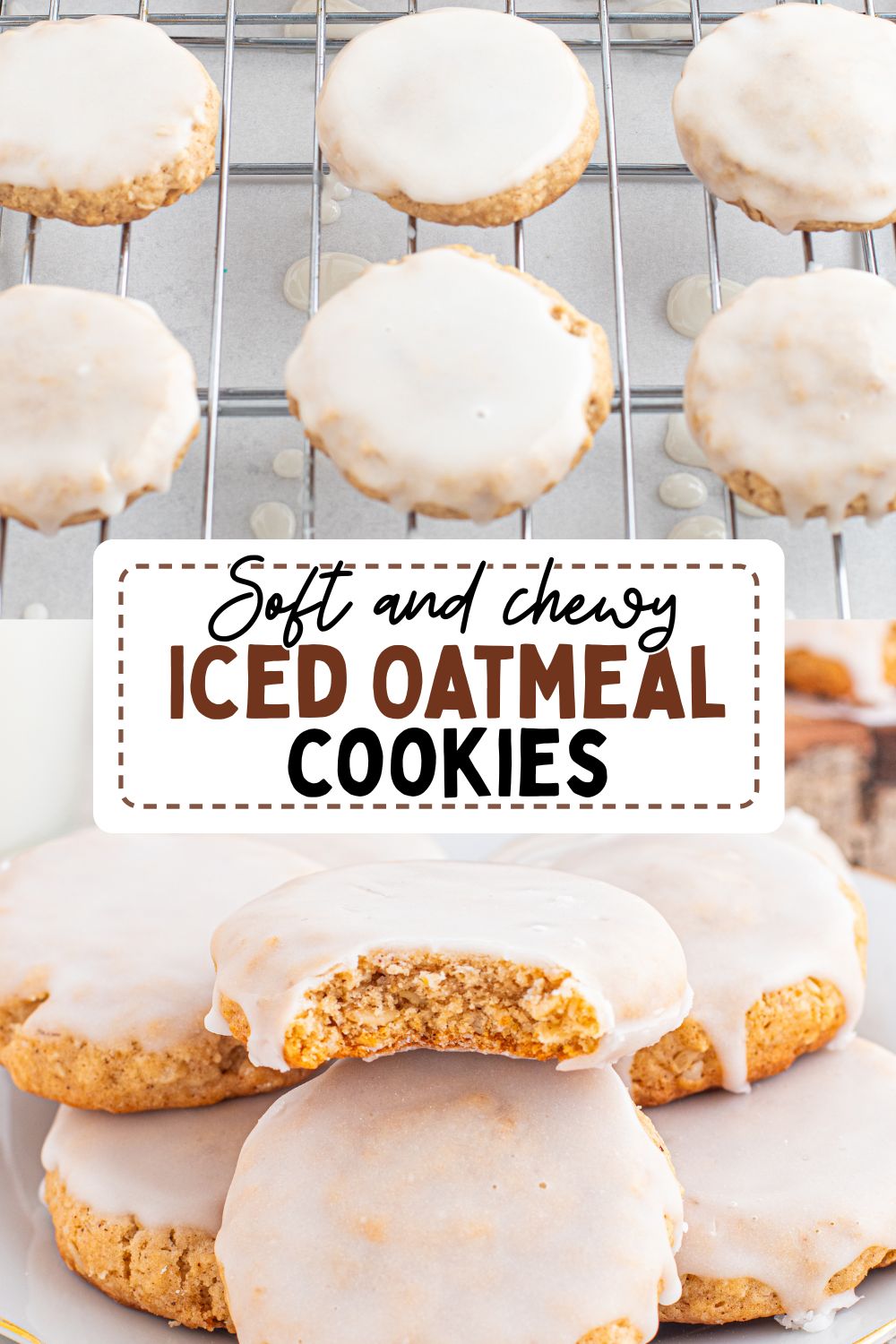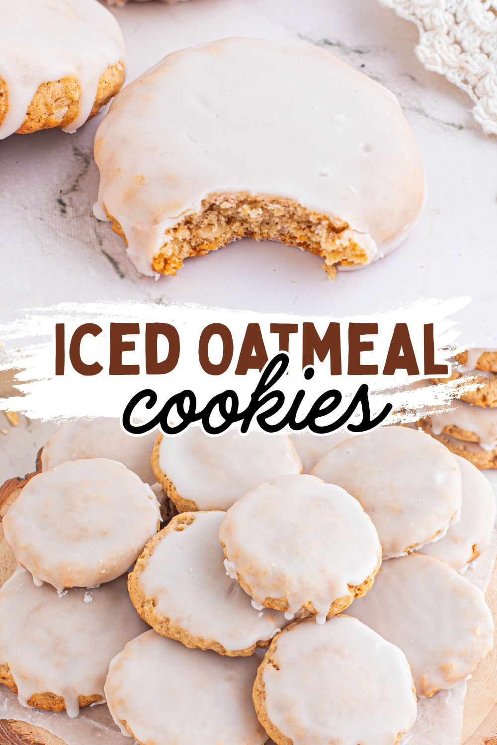Iced oatmeal cookies are typically dipped in a thin glaze that hardens upon cooling, giving them a crackled appearance. Frosted oatmeal cookies are spread with a thicker, softer frosting.