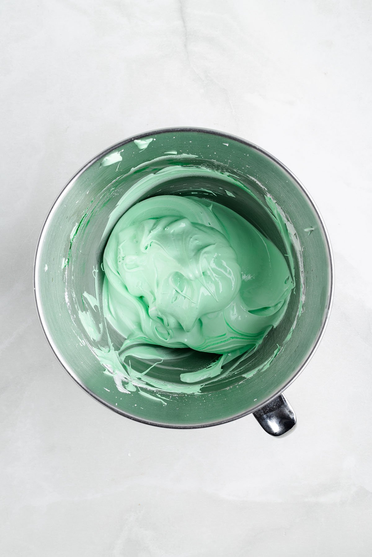 - Add green gel food coloring and mix until evenly tinted to your desired shade.Green gel food coloring