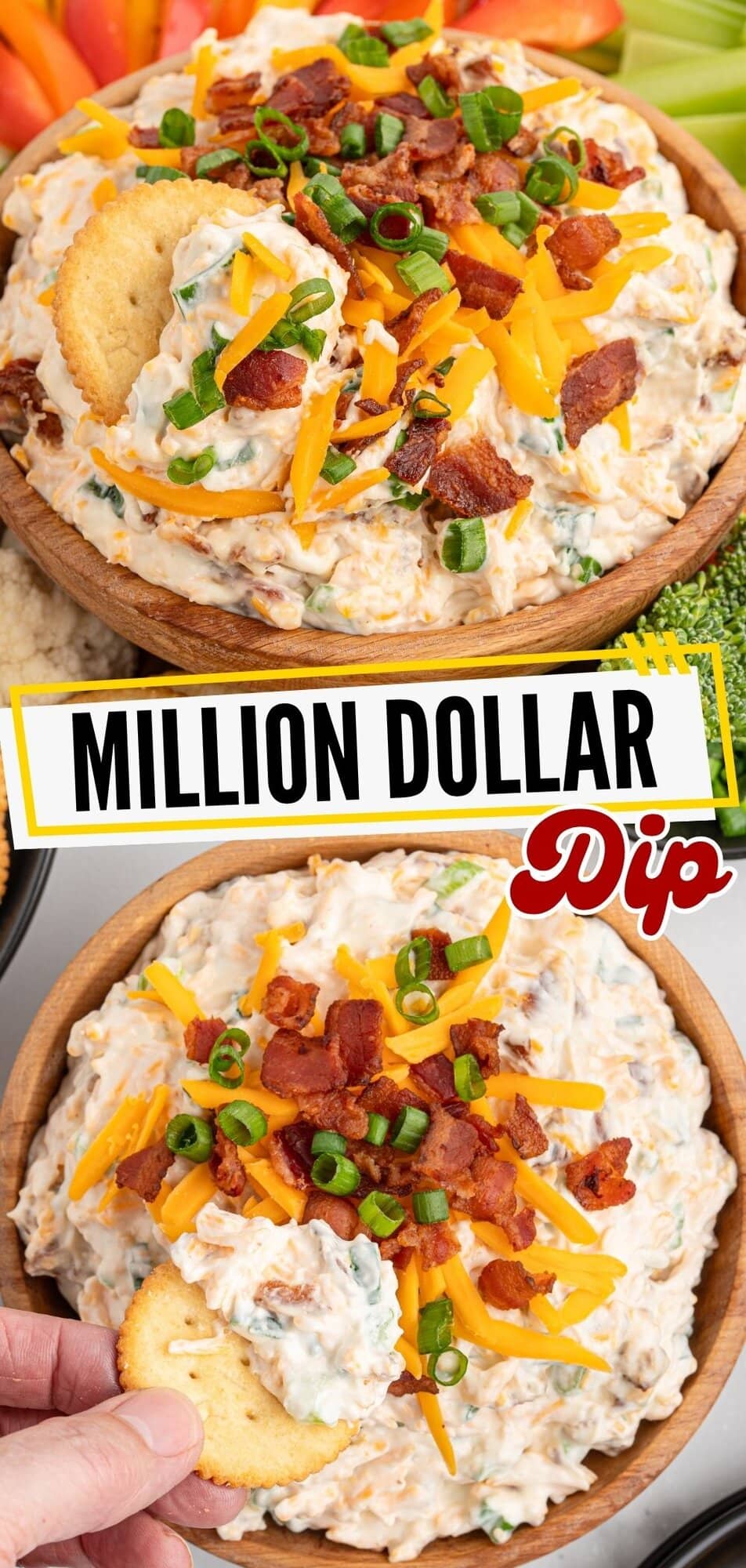 Million Dollar Dip is creamy, cheesy, and packed with bacon, green onions, and cheddar. This no-cook appetizer comes together in just 5 minutes—perfect for game day, holidays, or last-minute guests.