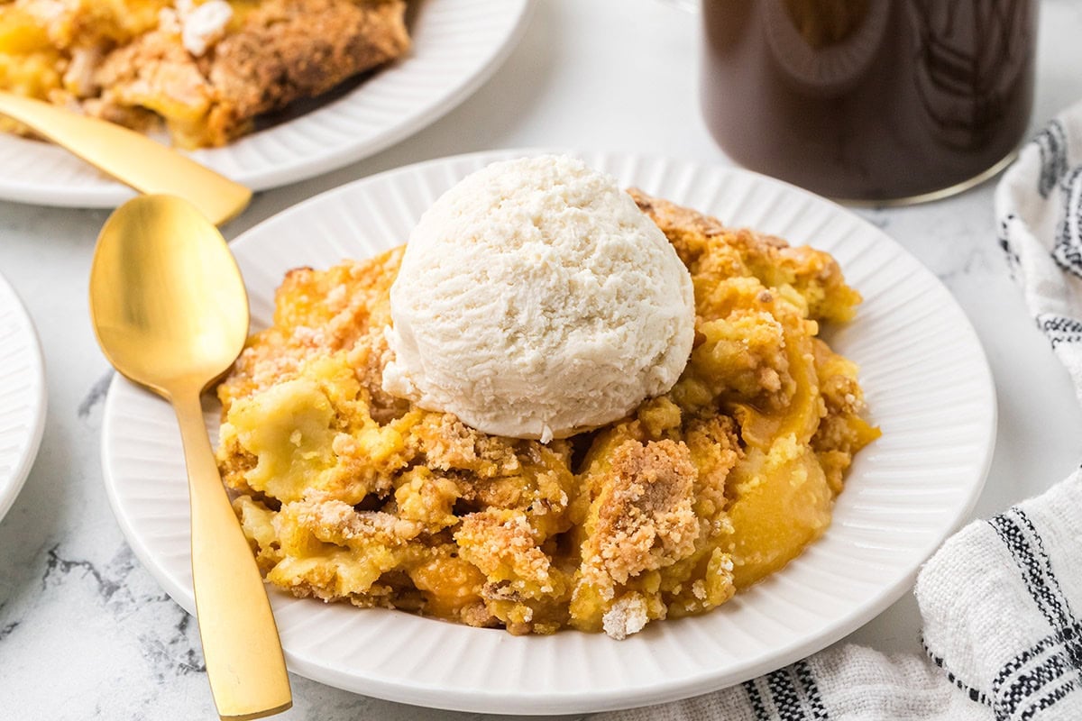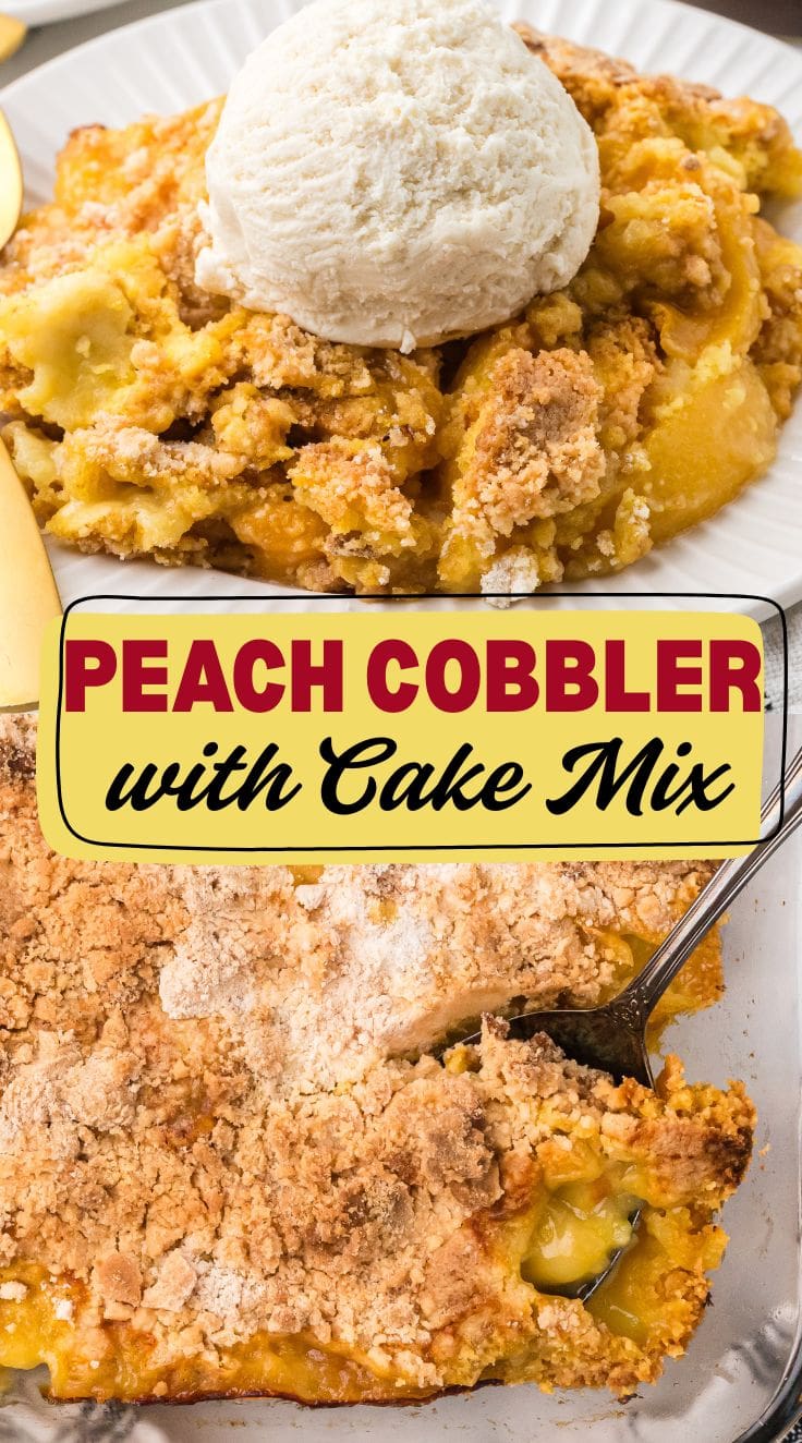 This easy peach cobbler with cake mix is a simple, dump cake-style dessert made with just 3 ingredients. Sweet, gooey peaches bake under a buttery, golden cake topping for a classic cobbler flavor, no mixing or fuss required.