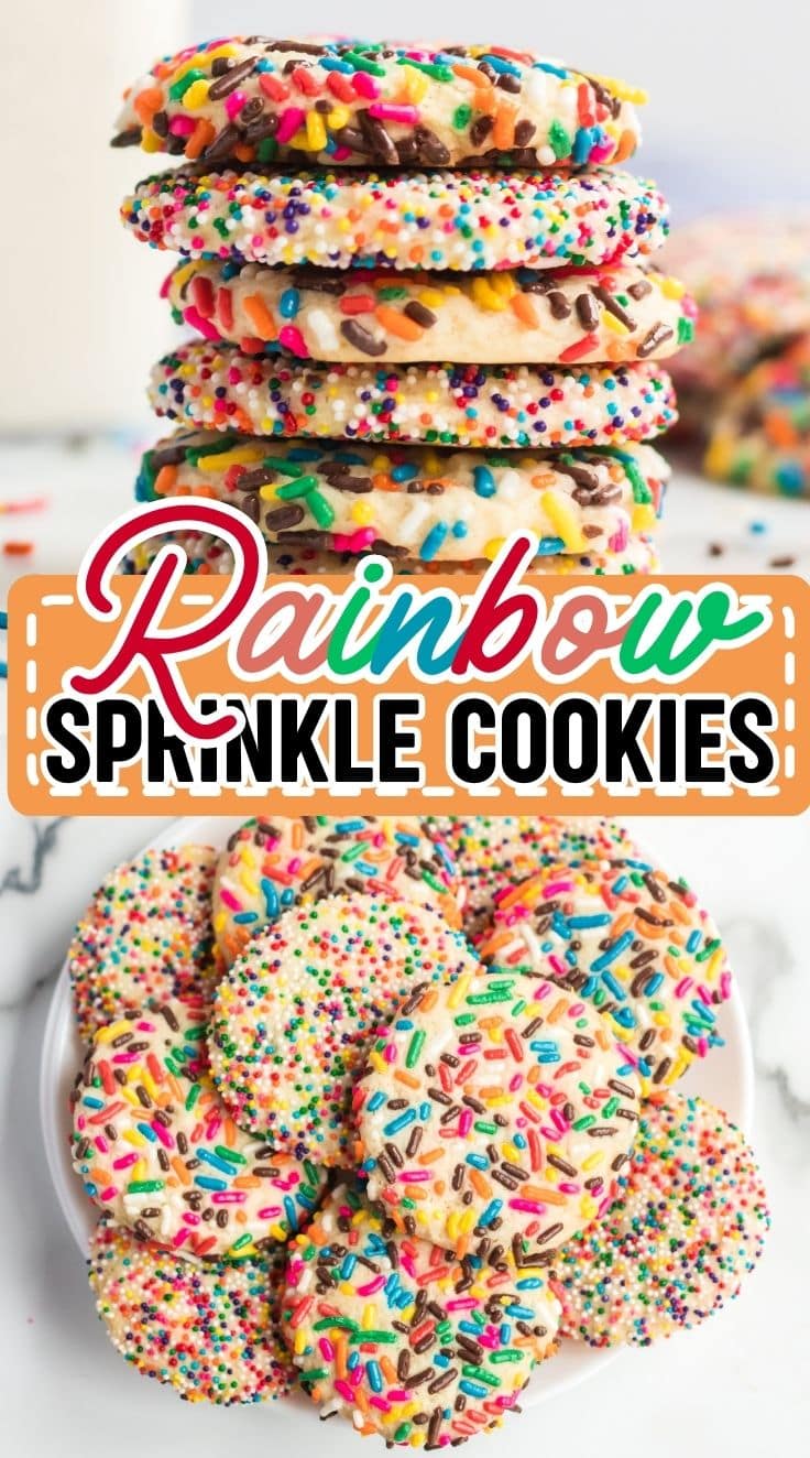 The best Sprinkle Cookies recipe ever! Soft and chewy and covered in rainbow sprinkles. This old-fashioned recipe is better than any bakery cookie you have ever eaten. No chill time and you can change the sprinkles for any occasion! They will melt in your mouth!