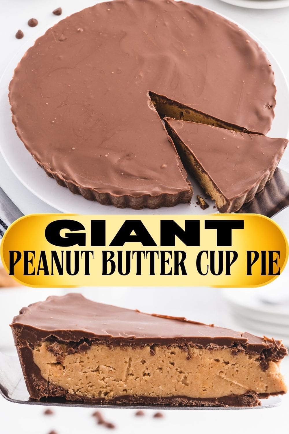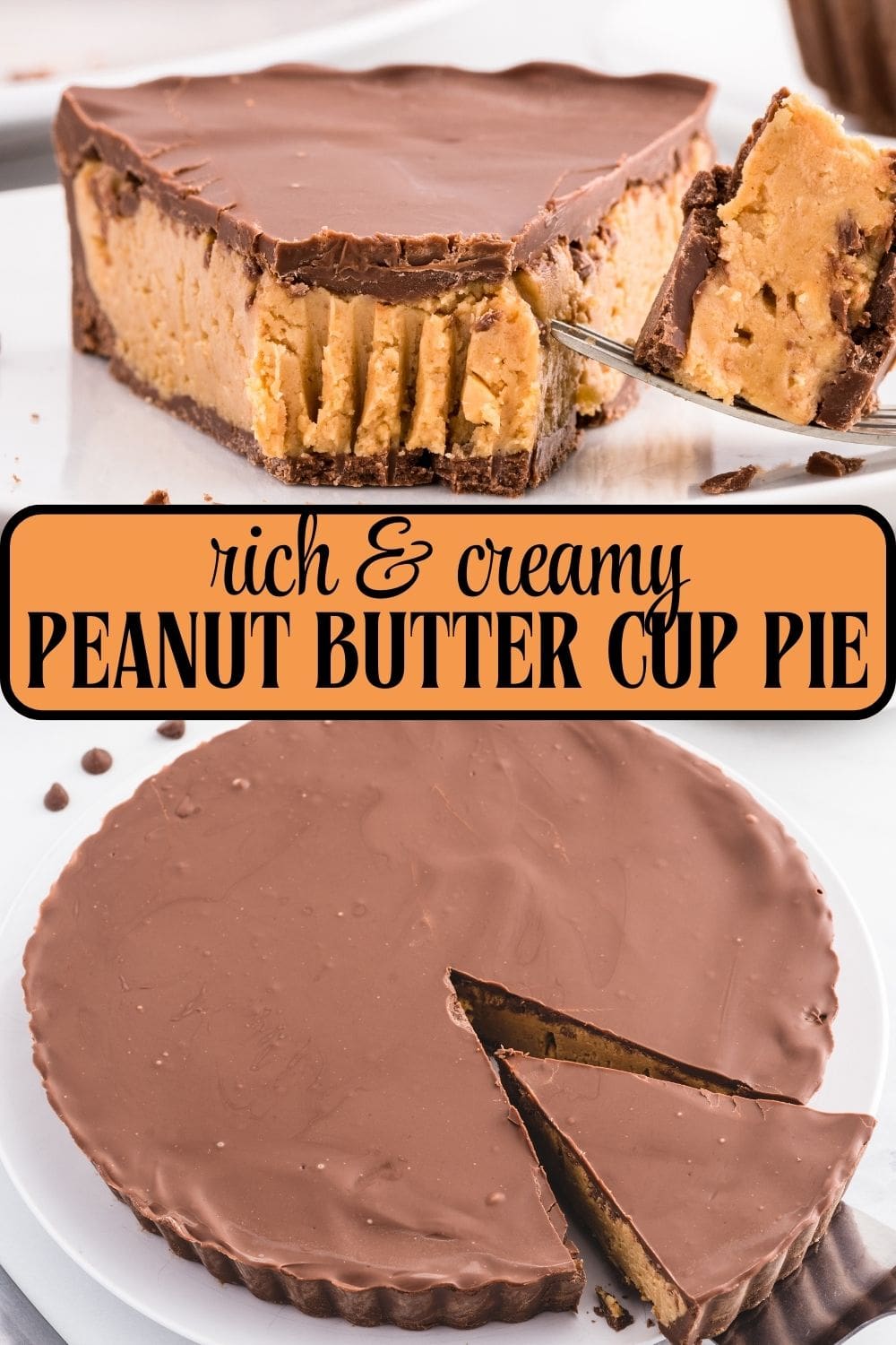 Calling all Reese’s peanut butter cup fans! You are going to love this recipe because it comes together so easily, is no-bake and gives you smooth, rich slices every single time. It is the kind of dessert you make when you want people ask you for the recipe after the first bite. Each slice has that classic peanut butter and chocolate flavor, and those iconic ridges give the whole thing the look of the real candy, only bigger and better!
