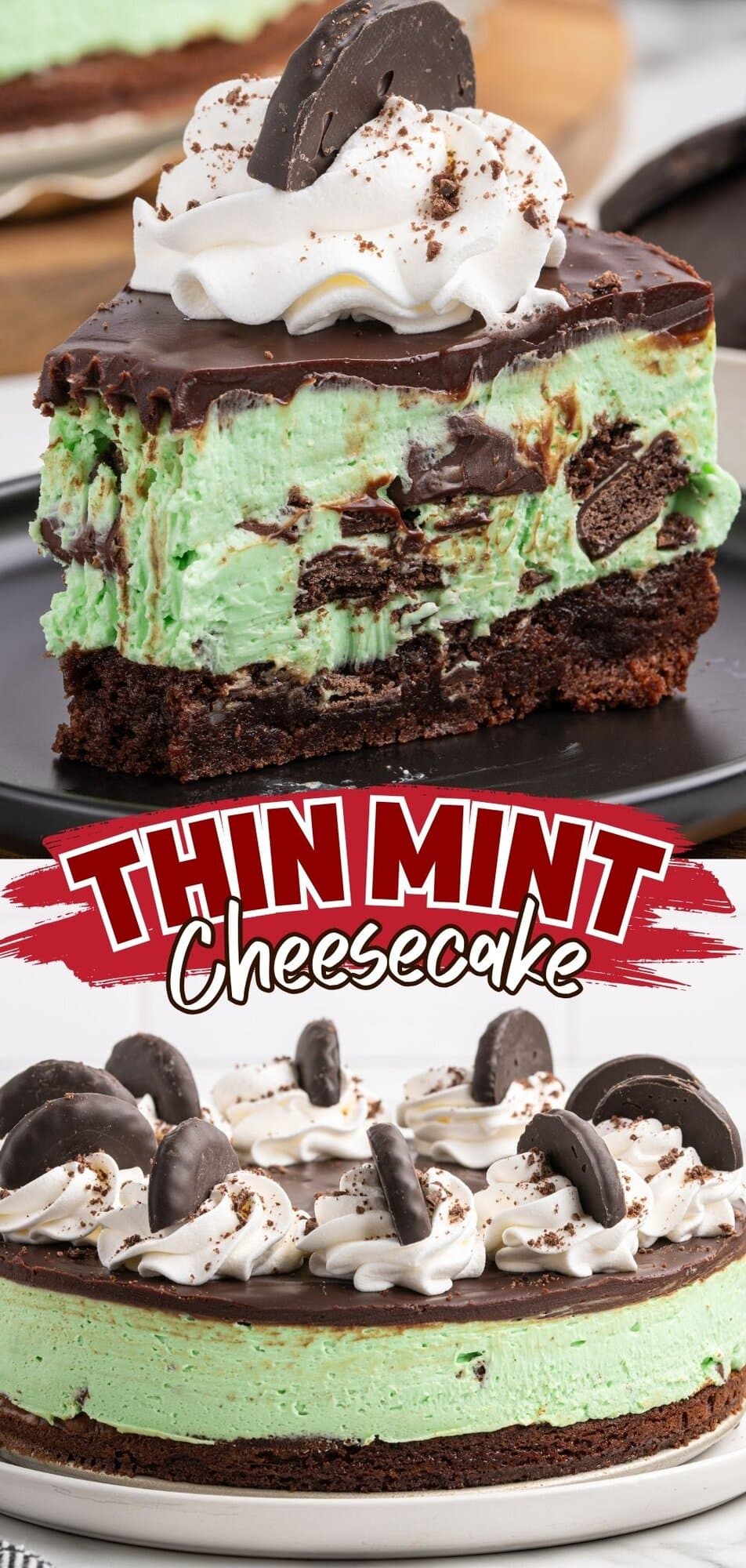 This Thin Mint Cheesecake tastes just like my favorite Girl Scout cookies, and I can’t stop at one slice. The fudgy brownie base is topped with a smooth, mint-flavored cheesecake and a shiny chocolate ganache. It’s the perfect mix of chocolate and mint in every bite.
