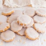 At Room Temperature: Store the iced oatmeal cookies in an airtight container at room temperature for up to 5 days. The glaze may soften slightly if the cookies are stacked, so if you’re layering them, place a sheet of parchment paper between each layer to help preserve the icing.